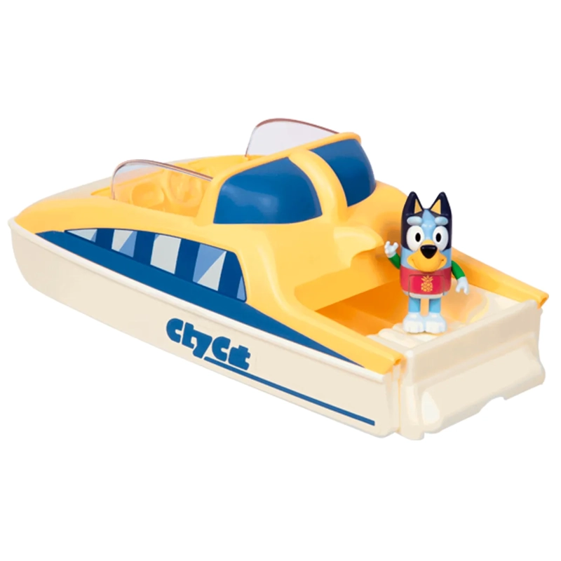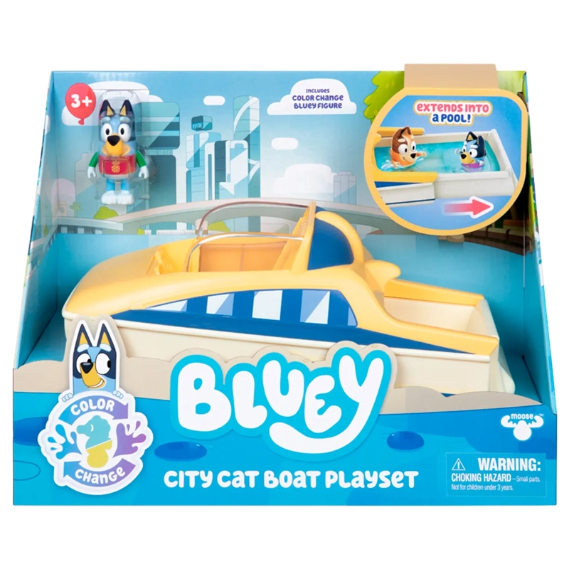 Suba a bordo del Bluey CityCat Playset para un viaje divertido e imaginativo inspirado en los icónicos ferries de Brisbane. Este playset especial da vida a las aventuras de Bluey. ¡El CityCat Playset no es solo para cruising, está lleno de sorpresas! La parte posterior del ferry se retira para revelar una piscina, agregando una nueva dimensión al tiempo de juego. El set de juego incluye una figura exclusiva de Bluey, con un cambio de color especial que agrega un toque mágico al tiempo de juego. El rashie de Bluey cambia de color y diseño cuando se sumerge en agua tibia o fría, proporcionando diversión sin fin para los más pequeños.